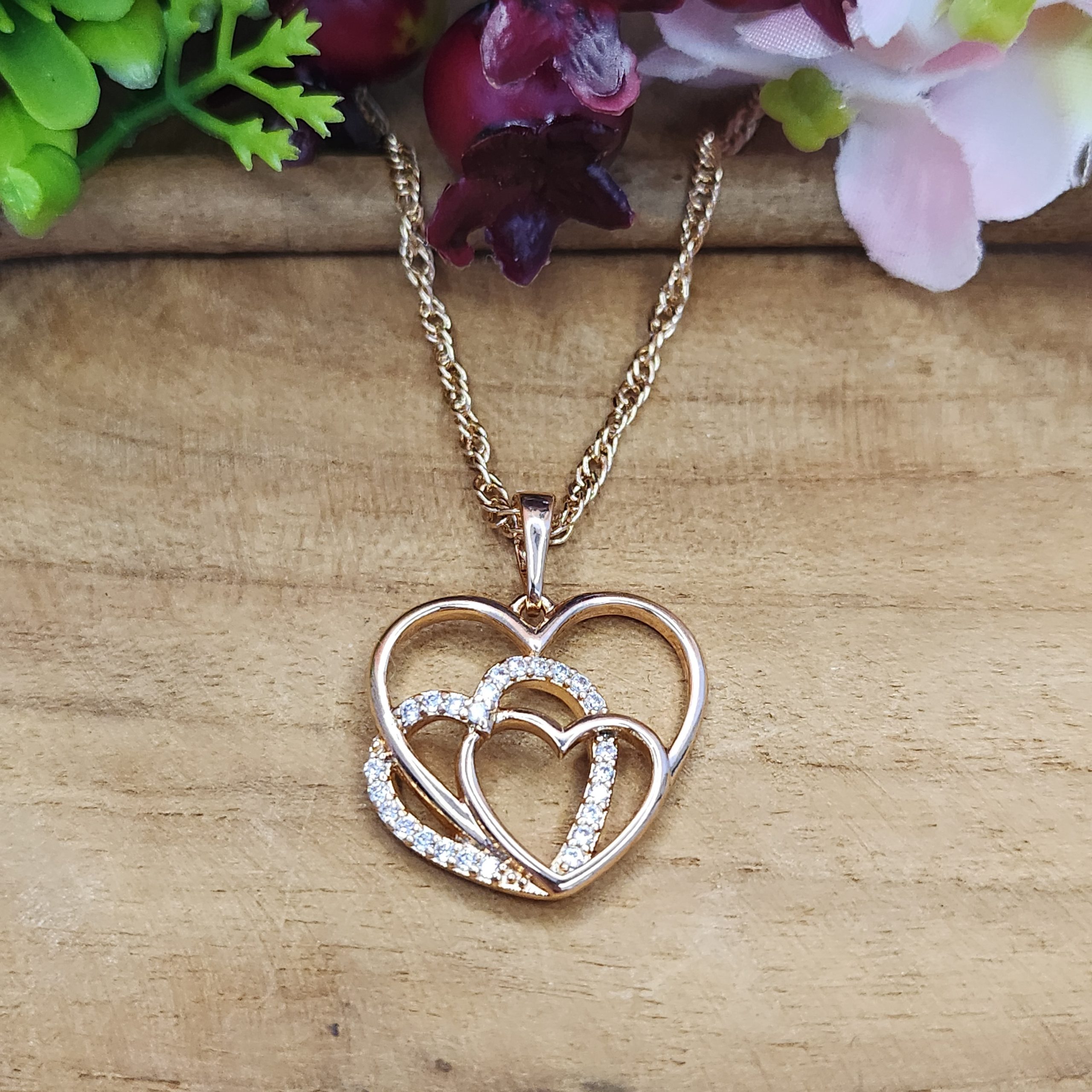 Wunderschöne Kette mit Anhänger in Herz- Form 18 K vergoldet mit Zirkonia weiß