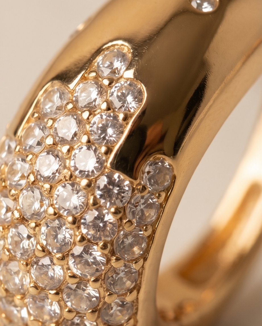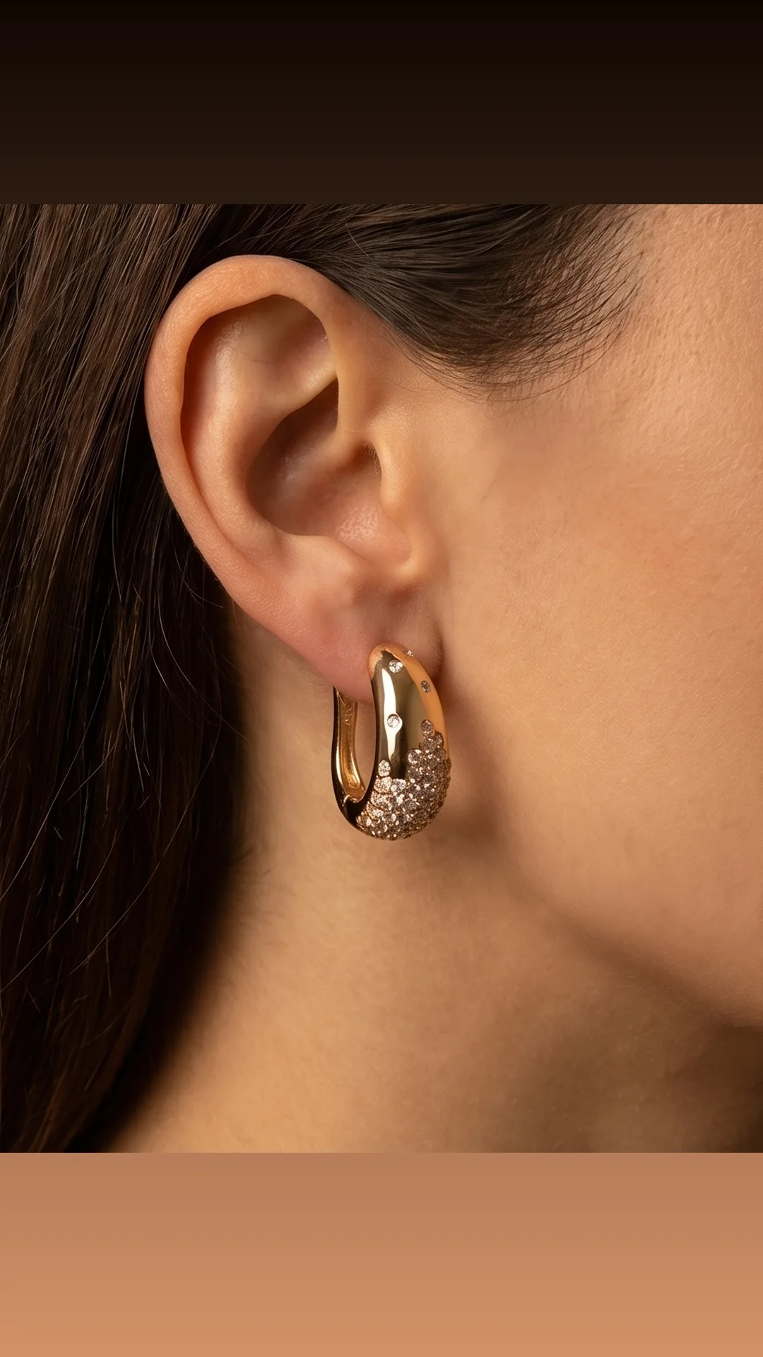 Die geschwungene, elegante Form trifft auf funkelnde Zirkonia-Steine, die das Licht wunderschön reflektieren und jedem Look eine besondere Ausstrahlung verleihen.