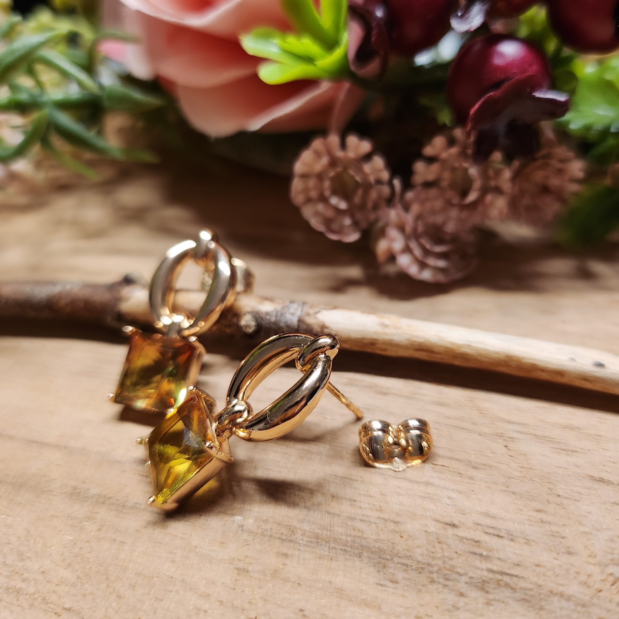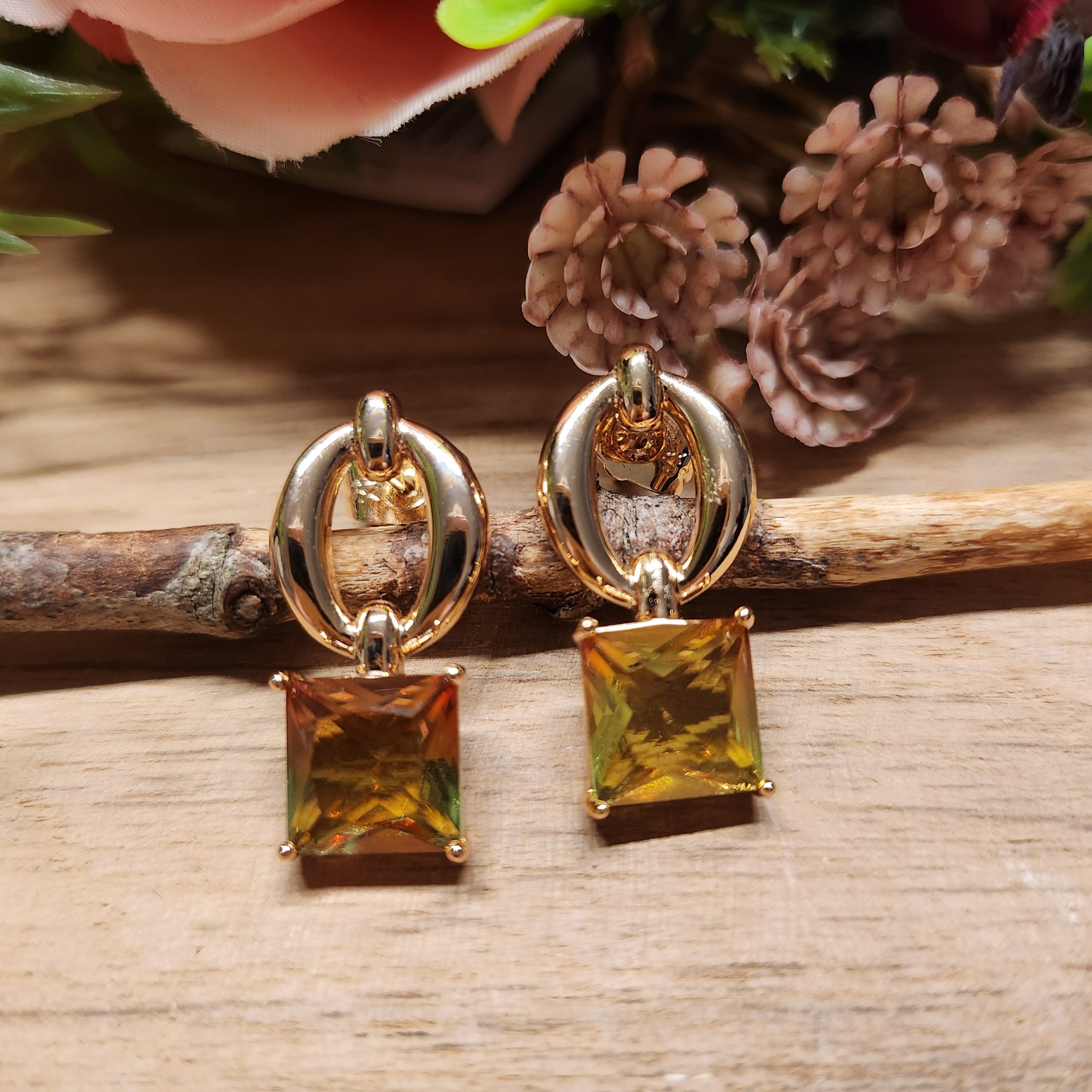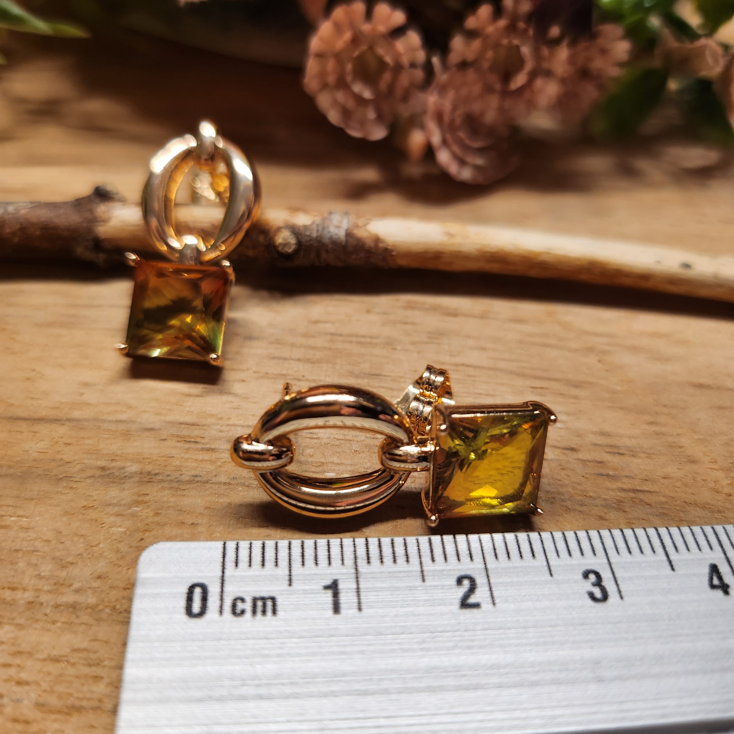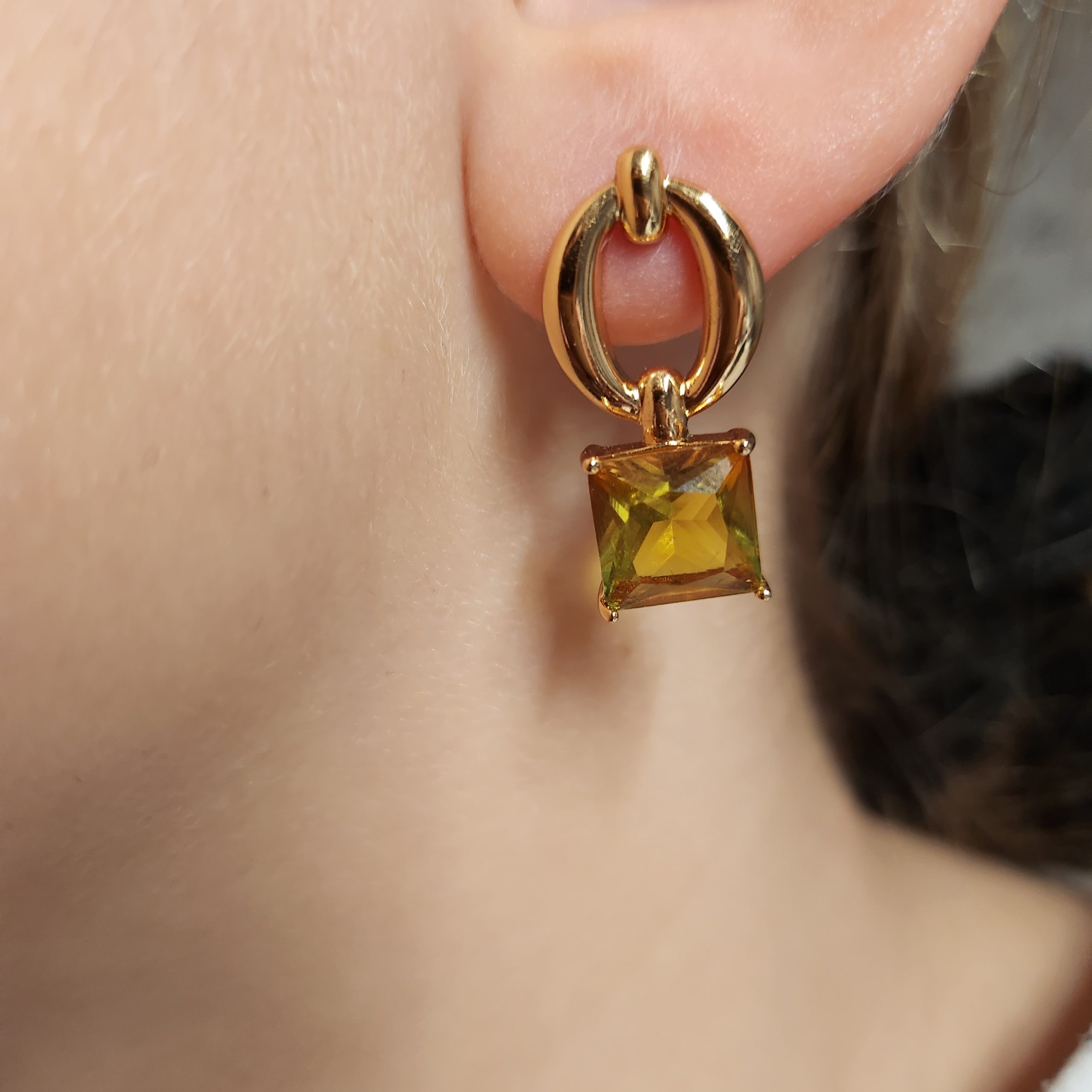 - Moderne Ohrstecker mit Kristall in gelb-grün Ton, 18K vergoldet