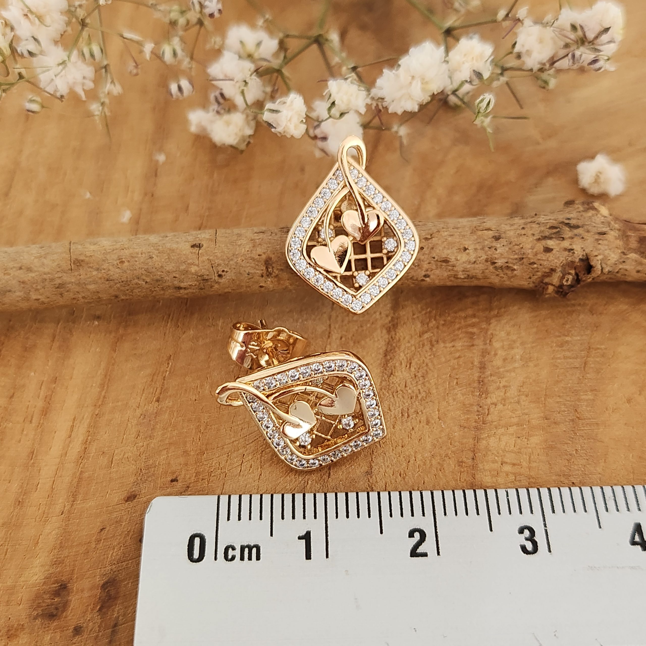 - Wunderschönes Set, bestehend aus Ohrstecker, Kette mit Anhänger, 18 K vergoldet mit weißen Zirkonia-Steinen
